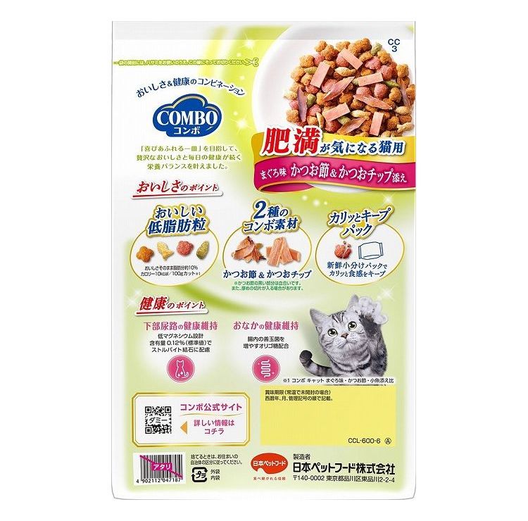 【2個セット】 日本ペットフード コンボ キャット 肥満が気になる猫用 まぐろ味・かつお節・かつおチップ添え 600g【ポイント10倍】 【送料無料】