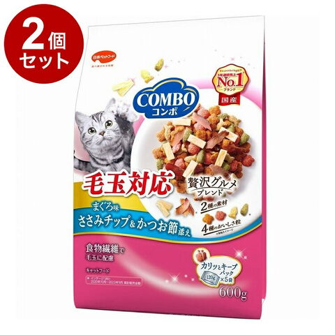 【2個セット】 日本ペットフード コンボ キャット 毛玉対応 まぐろ味・ささみチップ・かつお節添え 600g【ポイント10倍】 【送料無料】