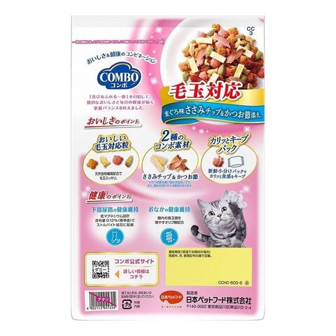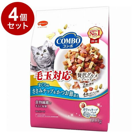 【4個セット】 日本ペットフード コンボ キャット 毛玉対応 まぐろ味・ささみチップ・かつお節添え 600g【ポイント10倍】 【送料無料】