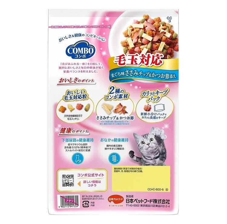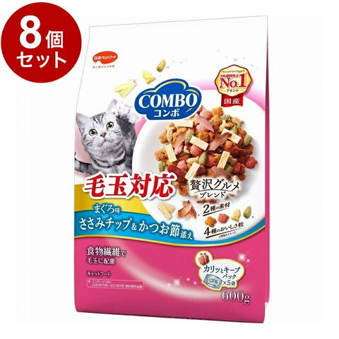 【8個セット】 日本ペットフード コンボ キャット 毛玉対応 まぐろ味・ささみチップ・かつお節添え 600g【ポイント10倍】 【送料無料】