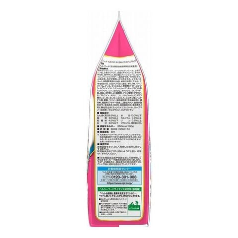穀類(トウモロコシ、コーングルテンミール、小麦粉、パン粉、小麦タンパク)、肉類(チキンミール、牛肉粉、豚肉粉、鶏ササミ)、魚介類(フィッシュミール、カツオブシ、フィッシュパウダー、魚肉すり身、マグロエキス、小魚粉末、カツオ節粉、カツオエキス、シラスパウダー)、油脂類(動物性油脂、植物性油脂)、でん粉、豆類(脱脂大豆、大豆タンパク)、食塩、オリゴ糖、ハーブ(タイム、ディル、フェンネル)、野菜類(トマト、ニンジン、ホウレンソウ)、クランベリーパウダー、ミネラル類(カルシウム、リン、カリウム、ナトリウム、クロライド、銅、亜鉛、ヨウ素)、pH調整剤、アミノ酸類(タウリン、トリプトファン、メチオニン)、ソルビトール、ビタミン類(A、B1、B2、B6、B12、D、E、K、ニコチン酸、パントテン酸、葉酸、コリン)、酵母細胞壁(食物繊維源)、調味料、着色料(アナトー色素、二酸化チタン、食用赤色102号、食用赤色106号、食用黄色5号、食用青色1号)、酸化防止剤(ミックストコフェロール、ローズマリー抽出物)、グルコサミン、コンドロイチン