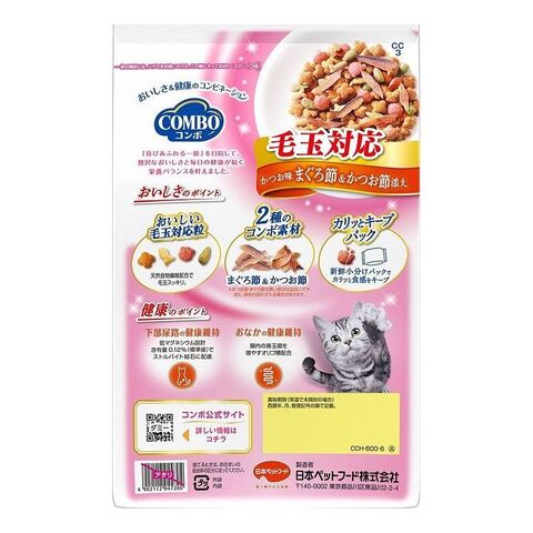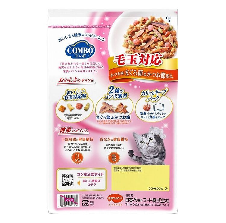 【4個セット】 日本ペットフード コンボ キャット 毛玉対応 かつお味・まぐろ節・かつお節添え 600g【ポイント10倍】 【送料無料】