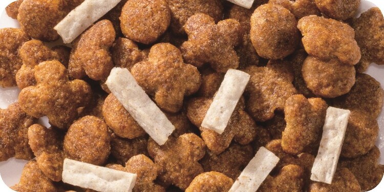 すくすく健康ブレンド!まぐろとかつお味にサクッと食感のにぼし入りチップを添えた子ねこ用。うす型小粒。