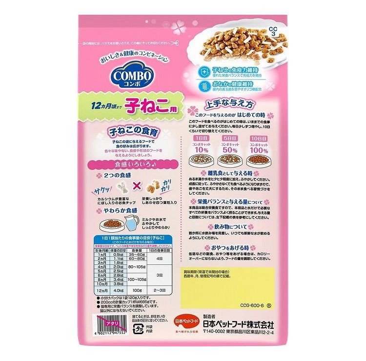【4個セット】 日本ペットフード コンボ キャット 子ねこ用 にぼし入りチップ添え 600g【ポイント10倍】 【送料無料】
