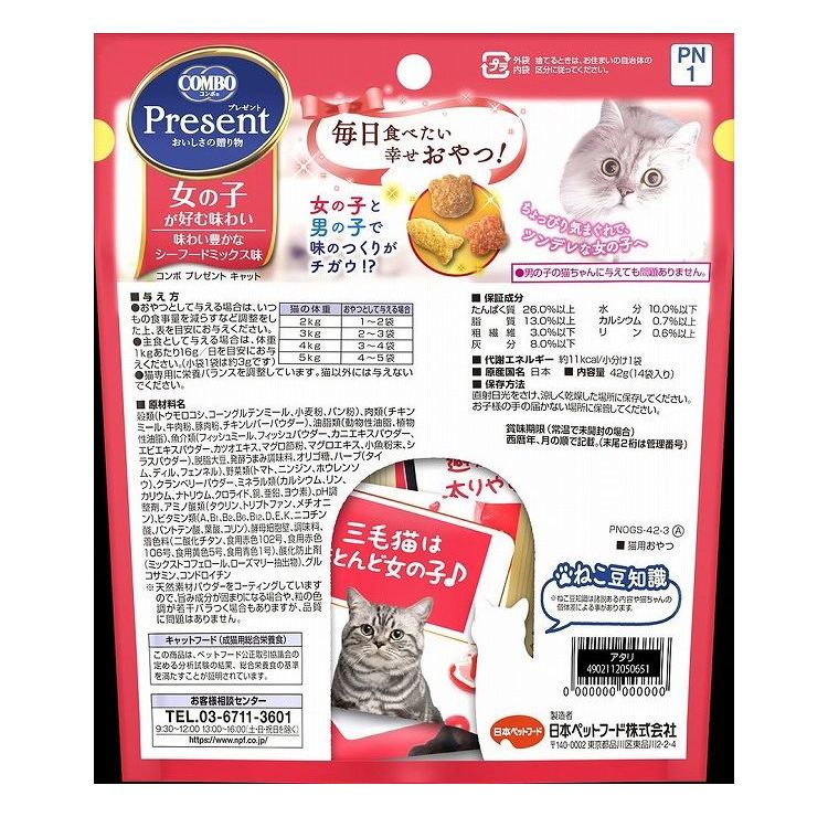 【30個セット】 日本ペットフード コンボ プレゼント キャット おやつ 女の子 シーフードミックス味 42g (3g×14袋)【ポイント10倍】 【送料無料】