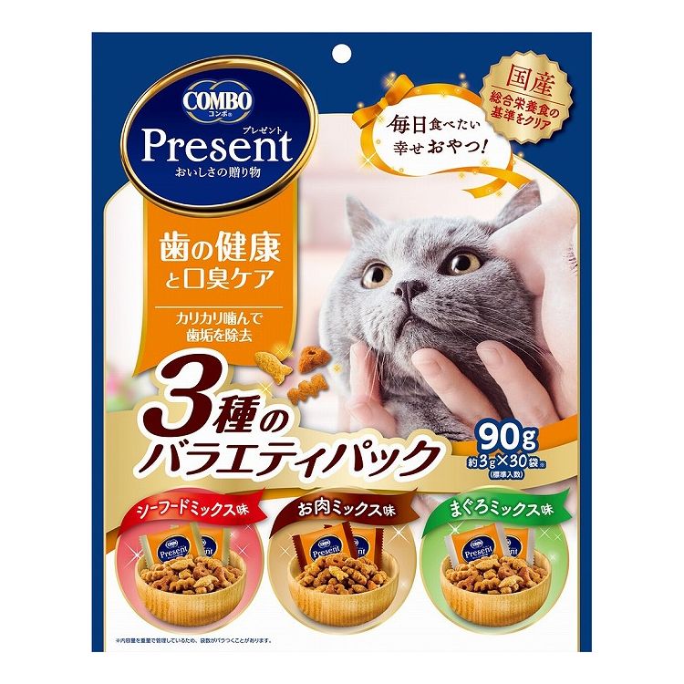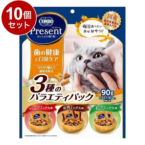 【10個セット】 日本ペットフード コンボ プレゼント キャット おやつ 歯の健康と口臭ケア 3種のバラエティパック 90g【ポイント10倍】 【送料無料】