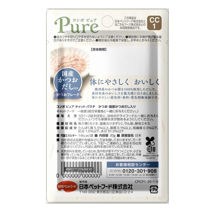 【12個セット】 日本ペットフード コンボ ピュア キャット パウチ かつお・国産かつおだし入り 30g【ポイント10倍】