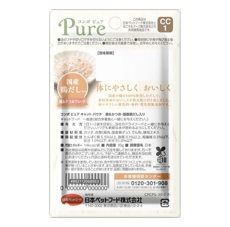 【12個セット】 日本ペットフード コンボ ピュア キャット パウチ 鶏&かつお・国産鶏だし入り 30g【ポイント10倍】