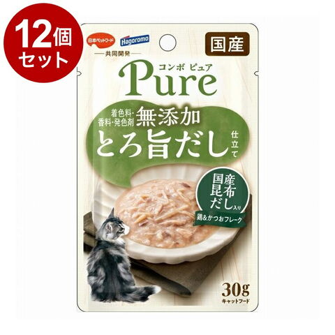 【12個セット】 日本ペットフード コンボ ピュア キャット パウチ 鶏&かつお・国産昆布だし入り 30g【ポイント10倍】