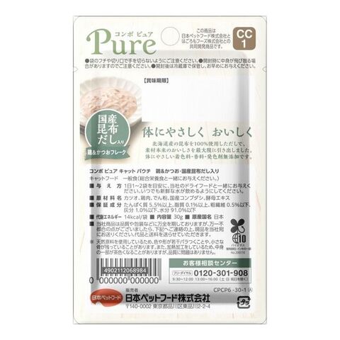 【24個セット】 日本ペットフード コンボ ピュア キャット パウチ 鶏&かつお・国産昆布だし入り 30g【ポイント10倍】 【送料無料】