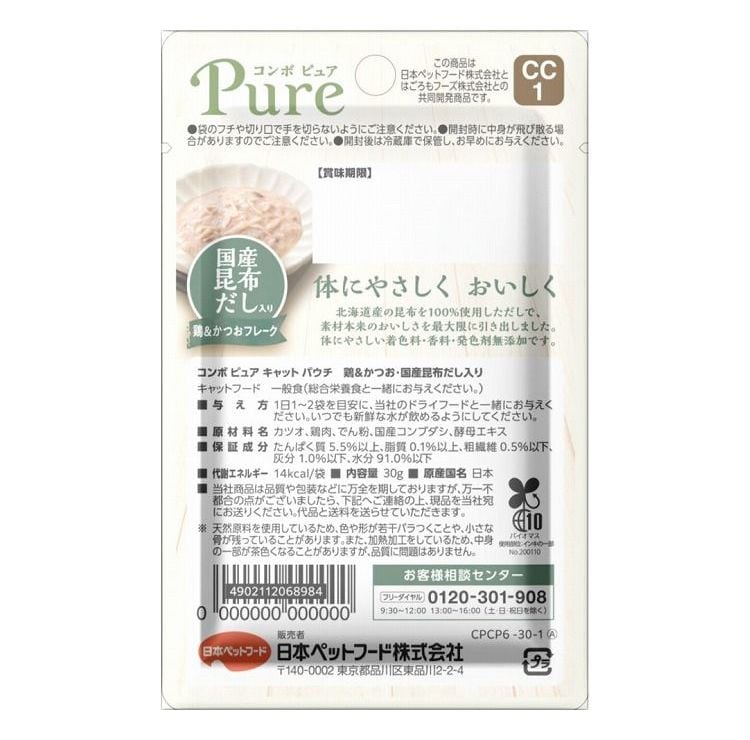 【48個セット】 日本ペットフード コンボ ピュア キャット パウチ 鶏&かつお・国産昆布だし入り 30g【ポイント10倍】 【送料無料】