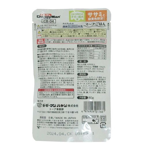 ドギーマンハヤシ わんちゃんの国産低脂肪牛乳スープごはん ササミと緑黄色野菜入り 80g