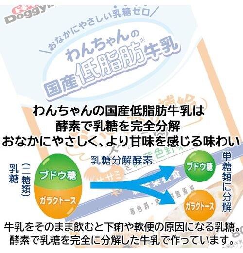 ・九州産の生乳を使用し、着色料・香料無添加の「わんちゃんの国産低脂肪牛乳」がベース。牛乳本来のクリーミーで濃厚なおいしさがいきています。