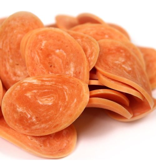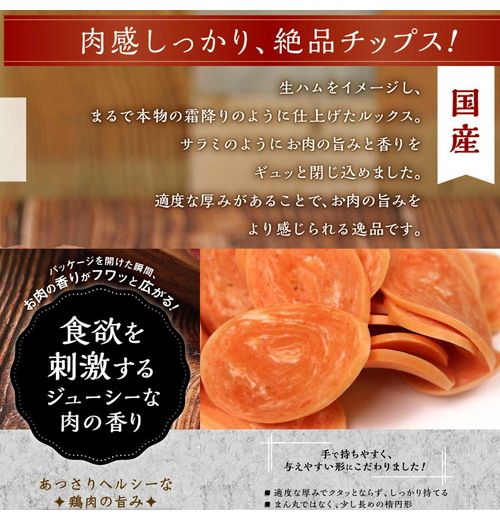 肉類(鶏胸肉、鶏ササミ、鶏肉、鶏レバー)、小麦粉、コーンスターチ、ホエーパウダー、ソルビトール、グリセリン、リン酸塩(Na)、保存料(ソルビン酸カリウム)、香料、着色料(酸化チタン、β-カロテン、赤106)