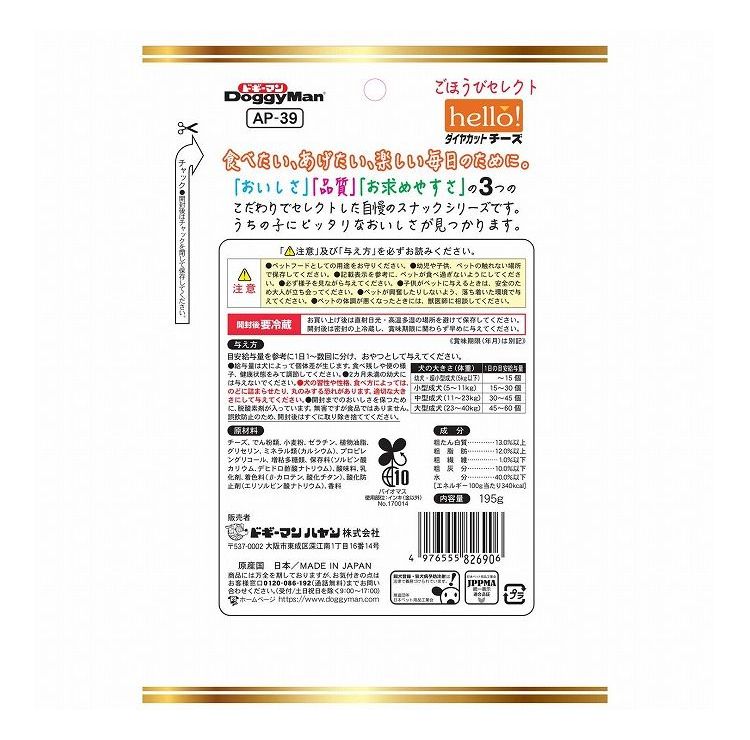 ドギーマン ごほうびセレクト hello! ダイヤカットチーズ 195g【ポイント10倍】