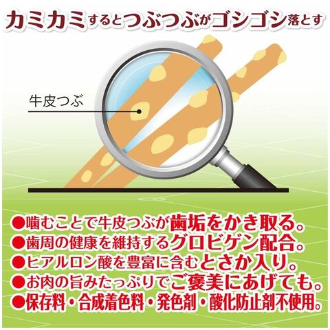 ・噛むことで牛皮つぶが歯垢をかき取る。