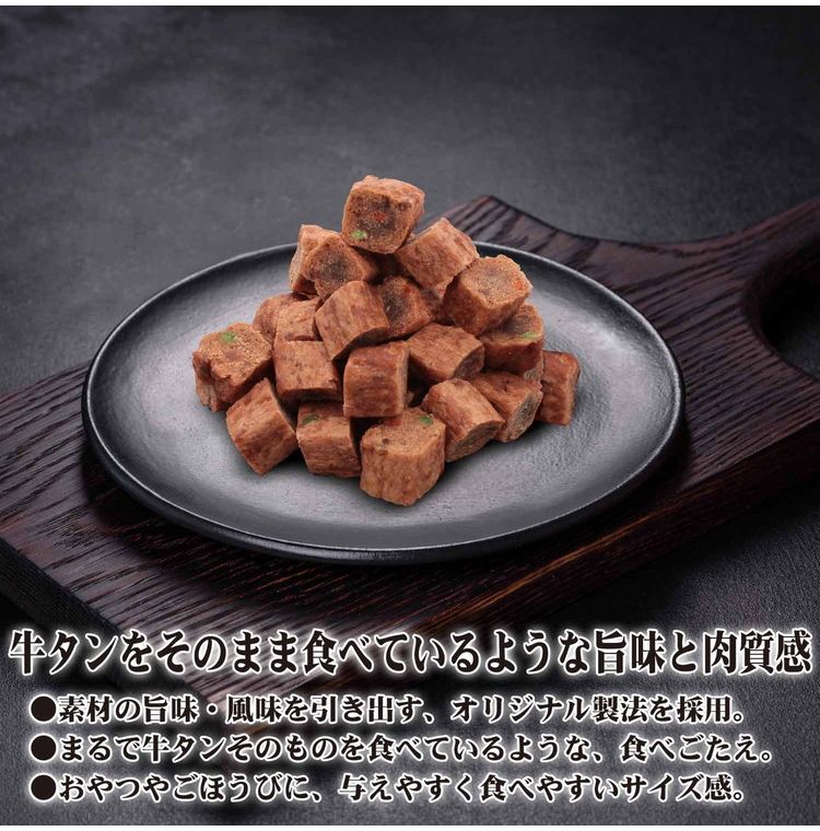 ※天然原料を使用しているため、色・形・ニオイ・硬さにバラつきがあります。また、製造工程上、厚みや形状にバラつきが生じたり、牛タン由来の黒い粒が混入する場合がありますが、いずれの場合も品質には問題ありません。