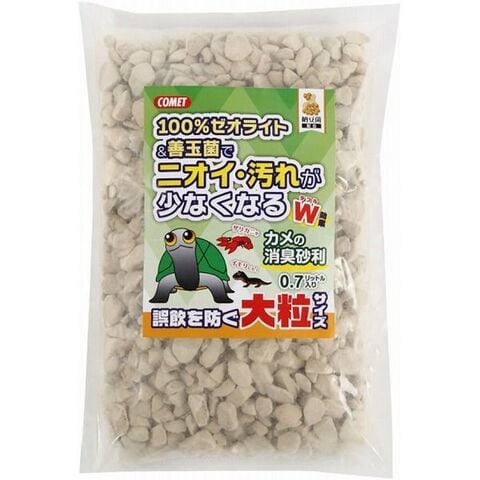 ・天然国産ゼオライト(無着色)を使用していますので安全にご使用いただけます。・エサの食べ残しや排出物から出る有害な物質を吸着して良好な飼育環境を保ちます。・多孔質なゼオライトが飼育水のろ過&ニオイの元であるアンモニア腸内バランスを整え、排出物の分解も助けます。・エサと一緒に誤飲するのを防ぐ大粒タイプ。