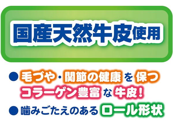 ・国産天然牛皮を噛み応えのあるロール形状に仕上げました。