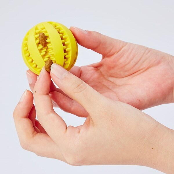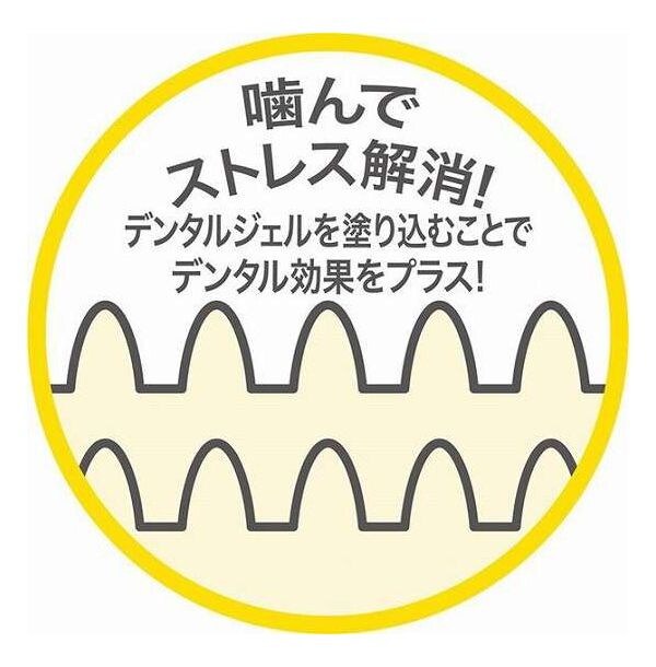 噛み心地抜群のラバー素材。おやつを挟んで遊んだり、ジェルを使えばデンタル効果もでます。