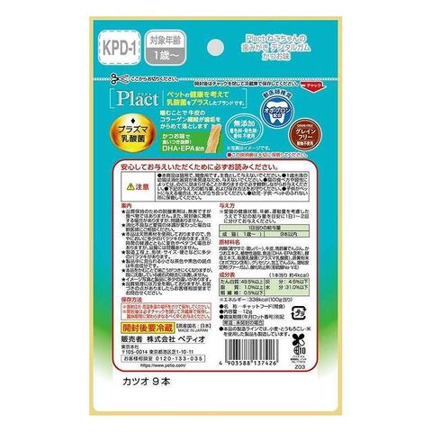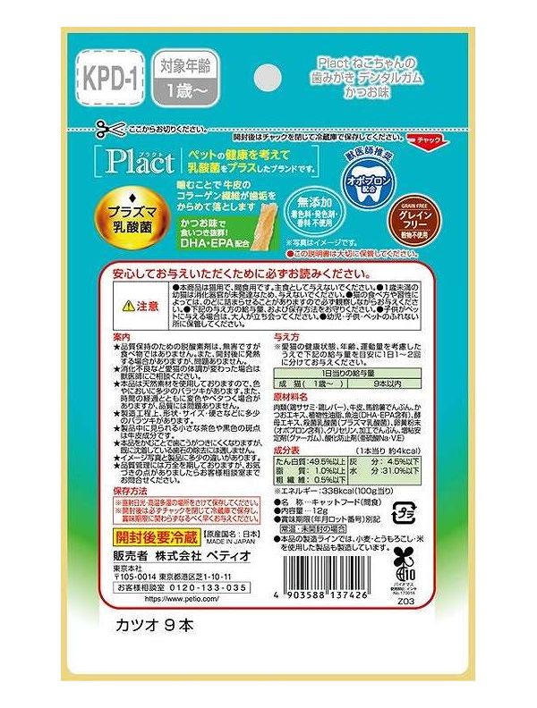 ペティオ プラクト ねこちゃんの 歯みがきデンタルガム かつお味 12g【ポイント10倍】