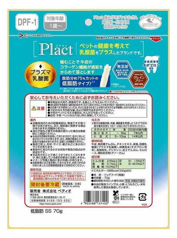 ペティオ プラクト 歯みがきデンタルガム 超小型~小型犬 低脂肪やわらか 70g【ポイント10倍】