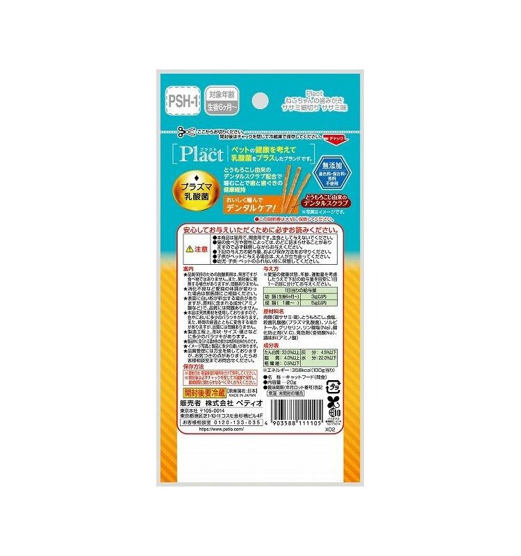 Plactはペットの健康を考えて乳酸菌をプラスしたブランドです。美味しく食べやすいササミの細切りにとうもろこし由来のデンタルスクラブを配合。毎日美味しく歯みがきができる!着色料・保存料・香料無添加。