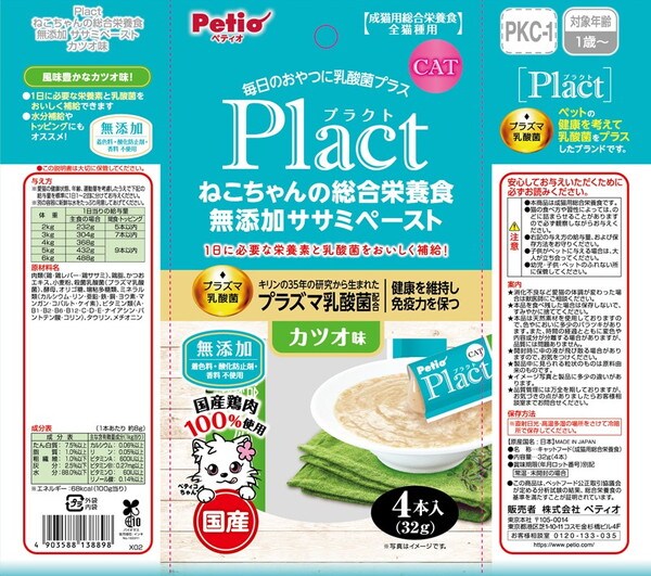 ・Plactはペットの健康を考えて乳酸菌をプラスしたブランドです。1日に必要な栄養素と乳酸菌をおいしく補給できます。