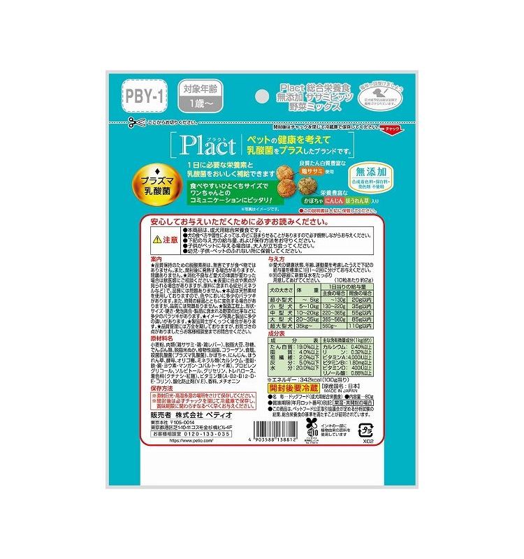 ペティオ Petio プラクト 総合栄養食 無添加 ササミビッツ 野菜ミックス 80g