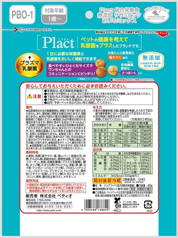 ペティオ プラクト 総合栄養食 無添加 ササミビッツ おいもミックス 80g【ポイント10倍】