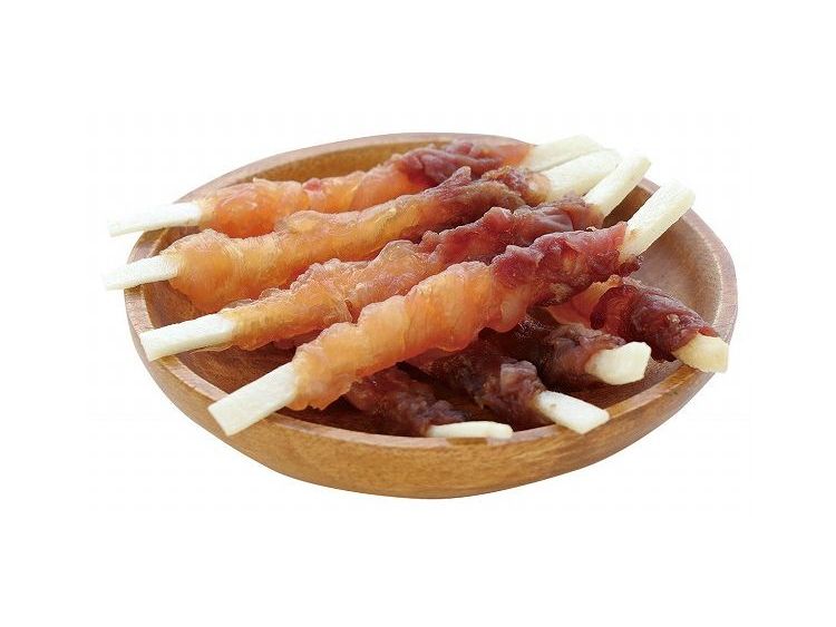 ・やわらか食感で食べやすい牛皮を旨味たっぷりなササミと味わい深い砂ぎもで巻きました。