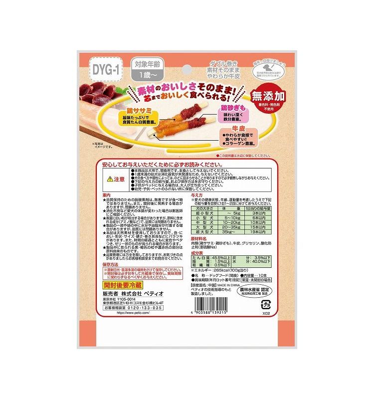 ペティオ Petio ダブル巻き 素材そのまま 無添加 やわらか牛皮 10本入