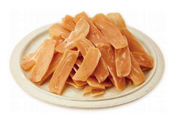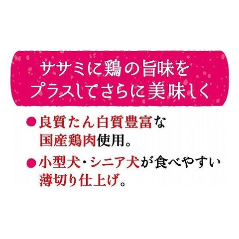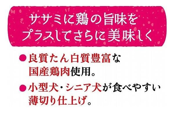 ササミに鶏の旨味をプラスしてさらに美味しく仕上げました。天然コラーゲン豊富な国産鶏肉使用。やさしい味わいのミルク入り!小型犬・シニア犬が食べやすい薄切り仕上げで、ちぎって与えやすい。