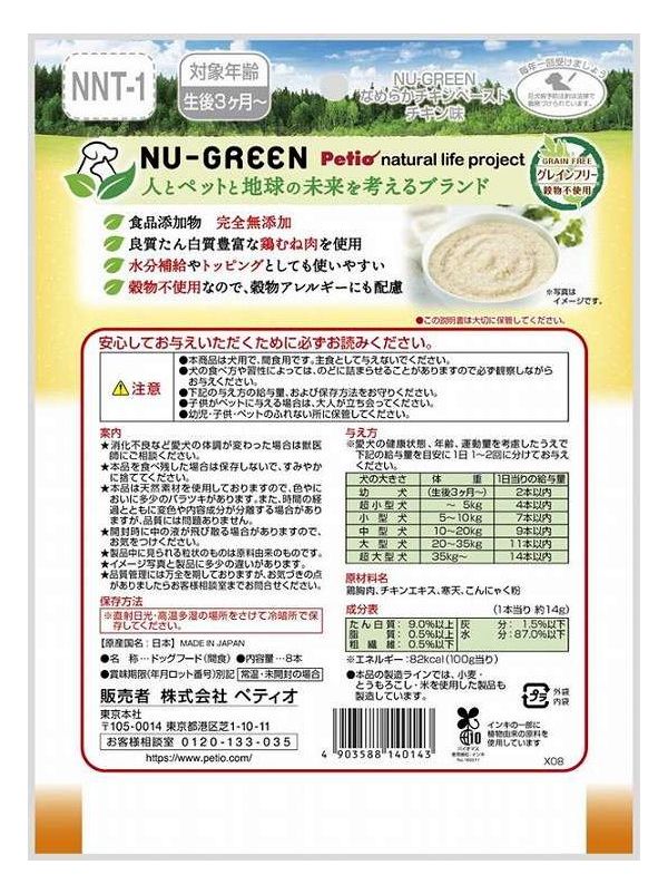 ペティオ ニューグリーン 完全無添加 なめらかチキンペースト チキン味 8本入【ポイント10倍】