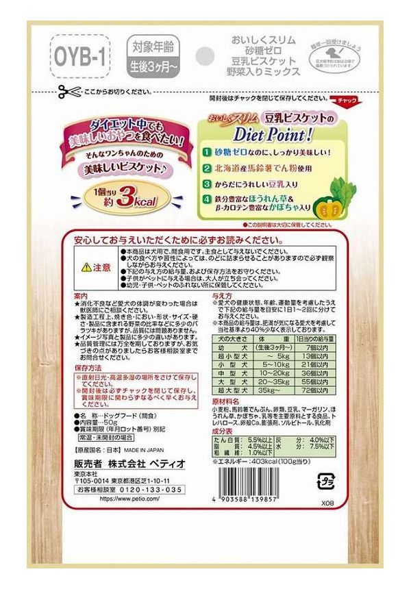 ペティオ おいしくスリム 砂糖ゼロ 豆乳ビスケット 野菜入りミックス 50g【ポイント10倍】