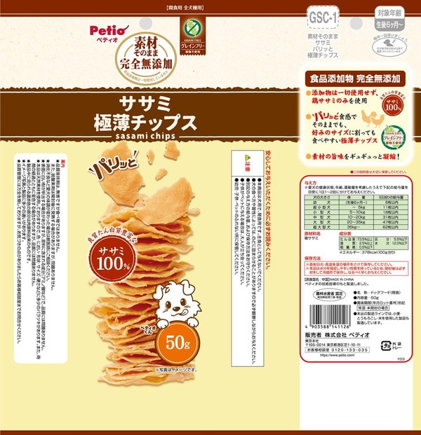 ペティオ 素材そのまま 完全無添加 ササミ パリッと 極薄チップス 50g【ポイント10倍】