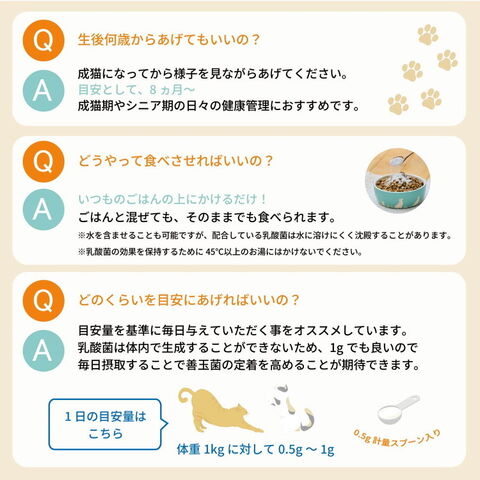 ・愛猫の体調、便の状態によって与える量を調整してください。