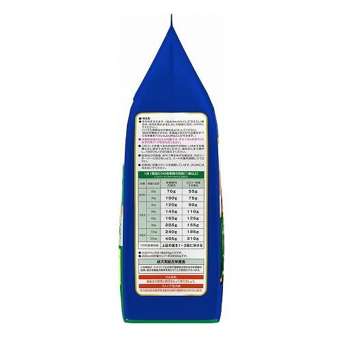 穀類(トウモロコシ、小麦粉、脱脂米糠、コーングルテンフィード、小麦タンパク)、肉類(チキンミール、チキン、鶏ササミ、牛肉粉、豚肉粉、チキンレバーパウダー)、脱脂大豆、油脂類(動物性油脂、植物性油脂(オメガ-6脂肪酸含む))、魚介類(小魚、小魚粉末)、でん粉分解物、糖類(ショ糖、オリゴ糖)、ビール酵母、食塩、セレン酵母、野菜類(キャベツ、大麦若葉、カボチャ、トマト、ニンジン、ブロッコリー、ホウレンソウ、モロヘイヤ)、カゼインホスホペプチド、プロピレングリコール、ミネラル類(カルシウム、リン、ナトリウム、クロライド、鉄、銅、マンガン、亜鉛、ヨウ素、コバルト)、pH調整剤、保存料(ソルビン酸カリウム、デヒドロ酢酸ナトリウム)、ソルビトール、膨張剤、ビタミン類(A、B2、B6、B12、D、E、パントテン酸、コリン)、着色料(二酸化チタン、食用赤色102号、食用赤色106号、食用黄色4号、食用黄色5号、食用青色1号)、グルコサミン、アミノ酸類(アルギニン、メチオニン)、コンドロイチン