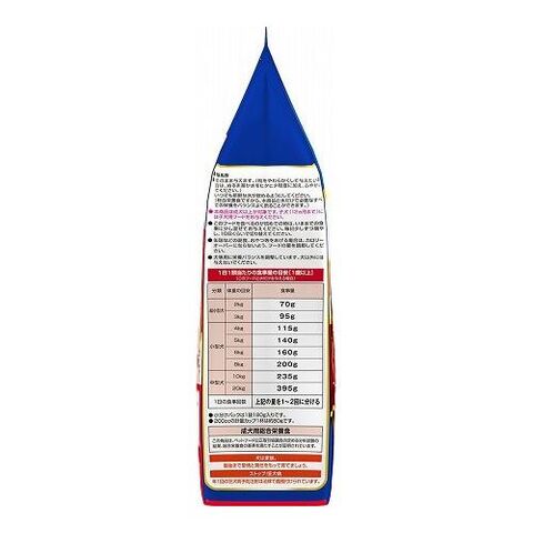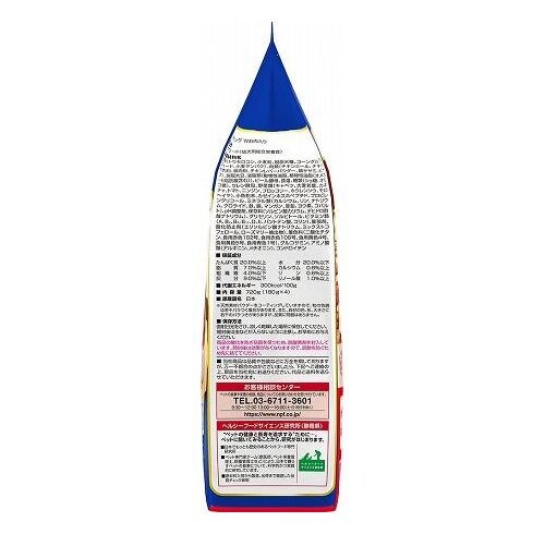 穀類(トウモロコシ、小麦粉、脱脂米糠、コーングルテンフィード、小麦タンパク)、肉類(チキンミール、チキン、牛肉粉、豚肉粉、チキンレバーパウダー、鶏ササミ、ビーフ)、脱脂大豆、油脂類(動物性油脂、植物性油脂(オメガ-6脂肪酸含む))、ビール酵母、食塩、糖類(ショ糖、オリゴ糖)、セレン酵母、野菜類(キャベツ、大麦若葉、カボチャ、トマト、ニンジン、ブロッコリー、ホウレンソウ、モロヘイヤ)、小魚粉末、カゼインホスホペプチド、プロピレングリコール、ミネラル類(カルシウム、リン、ナトリウム、クロライド、鉄、銅、マンガン、亜鉛、ヨウ素、コバルト)、pH調整剤、保存料(ソルビン酸カリウム、デヒドロ酢酸ナトリウム)、グリセリン、ソルビトール、ビタミン類(A、B2、B6、B12、D、E、パントテン酸、コリン)、膨張剤、着色料(二酸化チタン、食用赤色102号、食用赤色106号、食用黄色4号、食用黄色5号、食用青色1号)、グルコサミン、アミノ酸類(アルギニン、メチオニン)、コンドロイチン