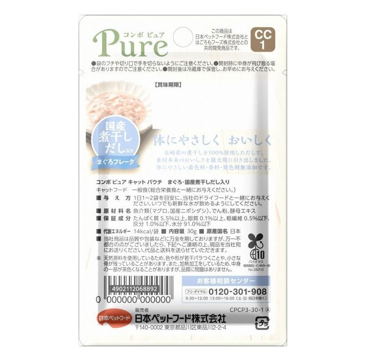日本ペットフード コンボ ピュア キャット パウチ まぐろ・国産煮干しだし入り 30g【ポイント10倍】