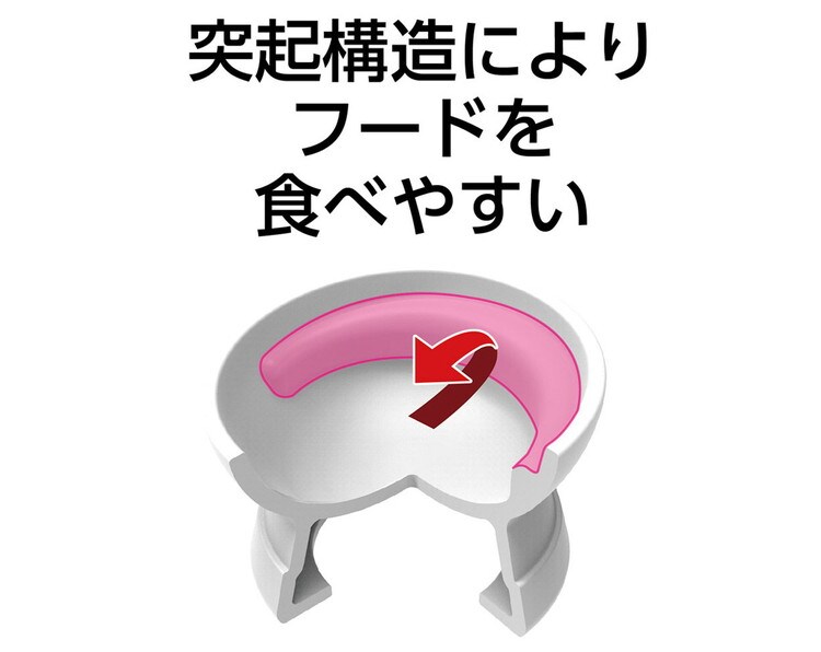 突起形状によりフードを食べこぼしにくい(特許出願中)傾斜により、フードが手前に集まりやすく残しにくい形状。