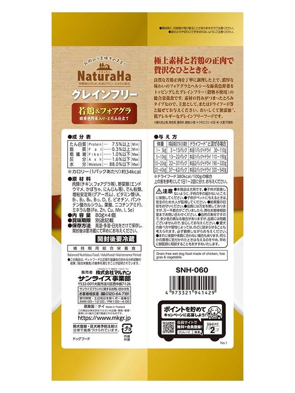 マルカンサンライズ ナチュラハ グレインフリー Premium 若鶏&フォアグラ 緑黄色野菜入り・とろみ仕立て 4個 犬 犬用 フード ドッグフード おやつ ペット ペットフード