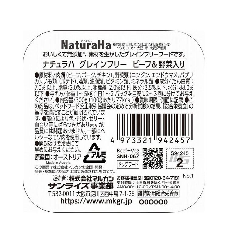 マルカン サンライズ事業部 Sunrise ナチュラハ グレインフリー ビーフ&野菜入り 300g