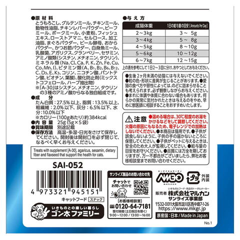 ・アミノ酸『A-30』を配合した猫の健康維持をサポートするトリーツです。