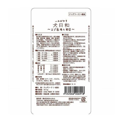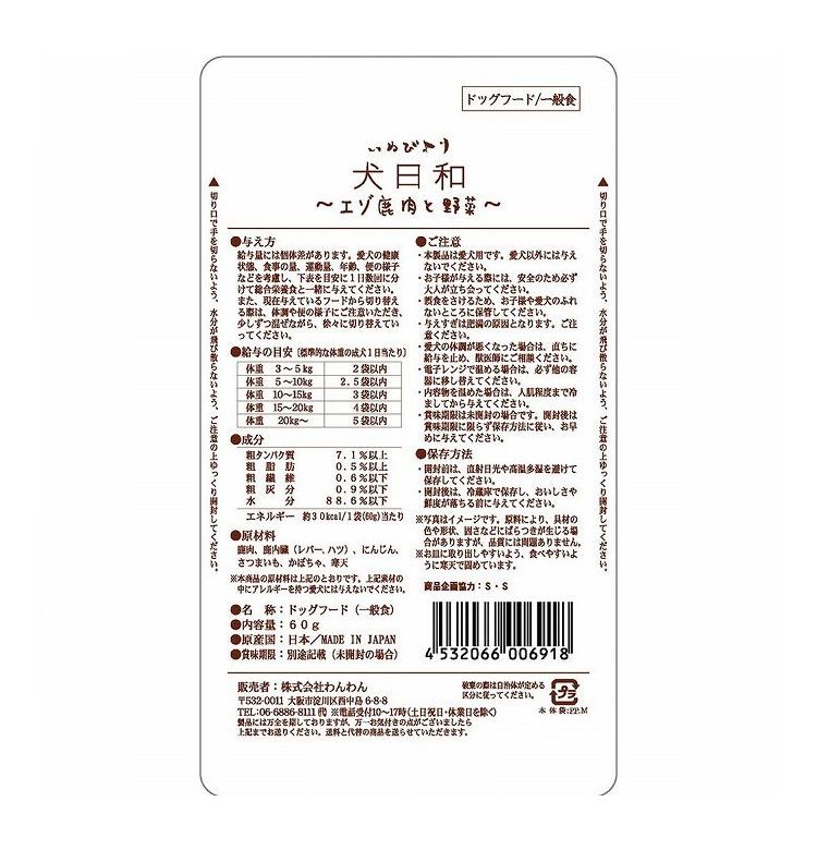 わんわん 犬日和 エゾ鹿肉と野菜 60g