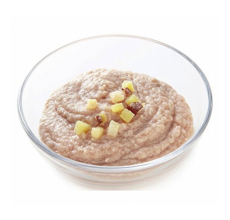 ささみをベースにさつまいもをトッピングしました。シニアでも食べやすいようペースト状にし、グルコサミンとコンドロイチンを配合しています。