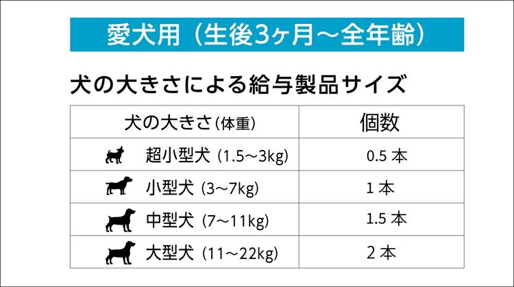 ・愛犬が本品を噛まずに丸飲みし、のどに引っかかることのないよう、食べきるまで飼い主は目を離さないようにして下さい。