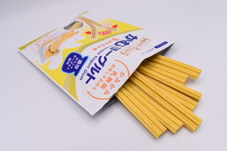 ・『水切り製法』による伝統方式で醗酵させて作った濃厚なギリシャヨーグルトをベースに、歯の健康維持に有効な成分を配合し、弾力のある食感を取り入れて作ったスティック形状の機能性ガムです。