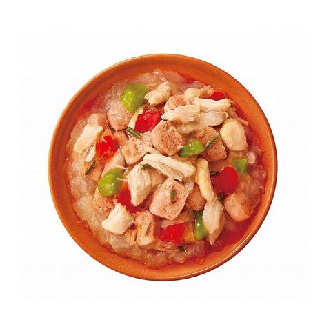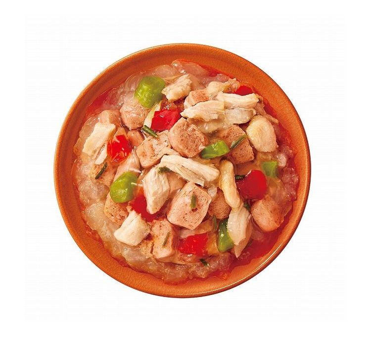 平飼いで育った鶏の良質なささみに、厳選したビーフとパプリカ・いんげんを加え、愛情込めて料理しました。着色料・香料不使用の無添加設計。