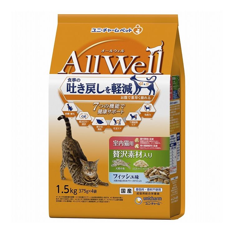 ユニチャーム AllWell 室内猫用 贅沢素材入りフィッシュ味天然小魚とささみフリーズドライ入り 1.5kg (375g×4袋)【ポイント10倍】